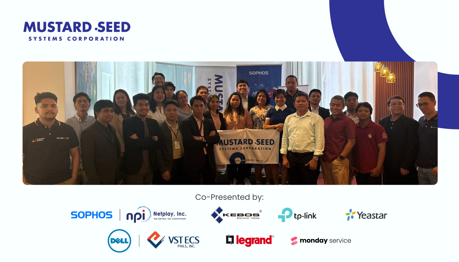 Events Mustard Seed Systems and PeoplesHR Host Successful Payroll & HRIS Event at Luxent Hotel admin July 25, 2025 0 Comment Mustard Seed Systems, IT Depot, and Sangfor Technologies Empower Zamboanga with IT-Driven Security Solutions admin July 24, 2025 0 Comment Driving Innovation with Microsoft and Pax8: Event Recap admin July 16, 2025 0 Comment Highlights from the Dumaguete Tech Event: Smarter Networks, Stronger Businesses admin July 10, 2025 0 Comment Mustard Seed Systems and monday.com Empower Real Estate Professionals Through Smarter Project Management admin June 10, 2025 0 Comment Mustard Seed Systems Shares How to Build a Reliable Datacenter — Highlights from Our Manila Event admin May 20, 2025 0 Comment Building Technology Solutions Showcases ZKTeco Smart Entrance Solutions in the Queen City of the South! admin May 6, 2025 0 Comment Building the Future: Bacolod Datacenter Event Empowers IT Experts with Intelligent and Resilient Solutions admin April 3, 2025 0 Comment Oracle NetSuite ERP Roadshow Reaches Batangas: Mastering BIR Compliance for Business Success admin April 3, 2025 0 Comment Mustard Seed Systems Corporation Fuels the Digital Growth in Cebu admin March 25, 2025 0 Comment Mustard Seed Systems Corporation Empowers Businesses with SAP Business One on Alibaba Cloud admin March 20, 2025 0 Comment Expanding Security Innovation in Mindanao: Highlights from the ZKTeco Event in CDO admin March 19, 2025 0 Comment Achieving Easier Tax Compliance with Mustard Seed Systems and Alibaba Cloud admin March 5, 2025 0 Comment Mustard Seed Systems Corporation Transforms Customer Management with monday.com admin February 20, 2025 0 Comment Mustard Seed Systems Corporation Drives Digital Transformation for Businesses with SAP Business One on Alibaba Cloud admin February 20, 2025 0 Comment